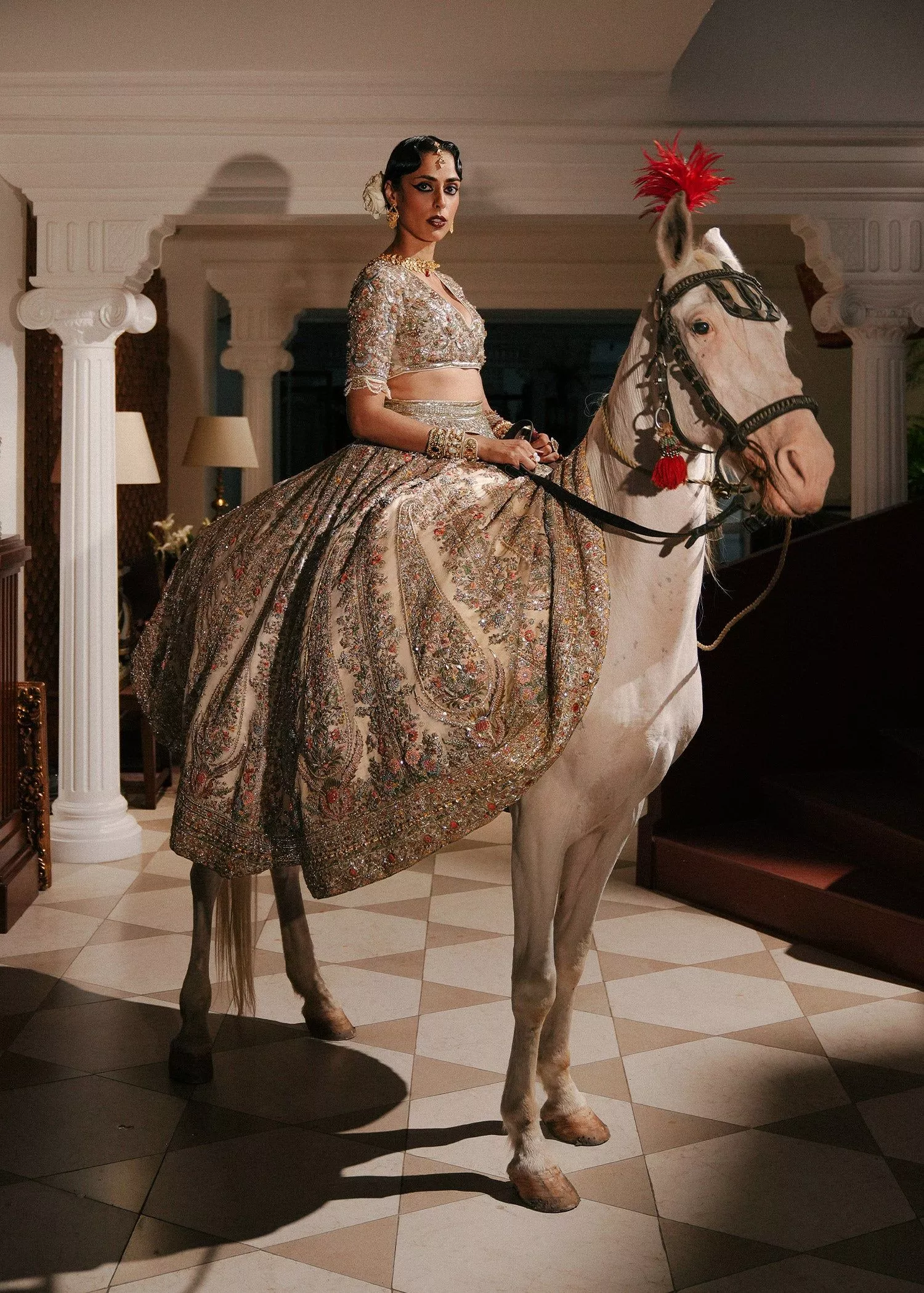 Elevate your elegance with our unique ivory pure organza lehnga, featuring a stunning hand-embellished paisley motif that serves as the centerpiece of this enchanting piece. Paired with a delicately embellished pure organza blouse and a matching dupatta, this ensemble radiates grace and sophistication.